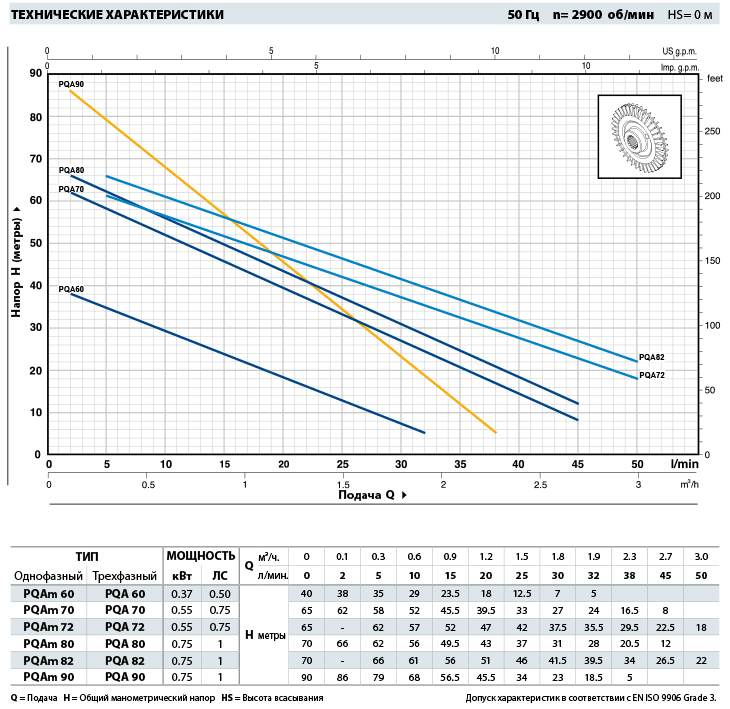 Серия PQA включает в себя вихревой электронасос, назначение которого связано с тем, что на периферии его рабочего колеса имеется большое количество радиальных лопаток, передающих энергию накачиваемой жидкости. Специальный профиль лопаток обеспечивает радиальную рециркуляцию поступающей в насос жидкости между лопатками рабочего колеса и двойным каналом, расположенным по его обеим сторонам. Так как каждая из многочисленных лопаток участвует в передаче энергии, давление жидкости постепенно возрастает в процессе ее перехода от всасывающего к нагнетательному патрубку; тем самым обеспечивается, с одной стороны, равномерность потока и отсутствие пульсаций, а с другой стороны - высокое давление и крутизна характеристик рабочих кривых. При относительно простой конструкции насос серии PQA отличает особо тщательно выполненная механическая обработка, позволяющая избежать ухудшения рабочих характеристик. Фирма PEDROLLO S.P.A., работающая на рынке вихревых электронасосов с 1975 года, накопила огромный опыт в области оптимальных конструктивных решений и технологий. Этот опыт, дополняемый усилиями, направленными на полную автоматизацию производственных процессов, обеспечивает фирме мировое лидерство в данной отрасли.