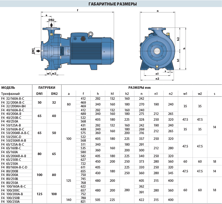 Консольно-моноблочные насосы серии F рекомендуются для перекачки чистой воды без наличия абразивных частиц и иных жидкостей, химически не агрессивных к конструкционным материалам насоса. Установка электронасоса должна производиться в закрытых помещениях или в местах, защищенных от атмосферного воздействия. Насосы с трехфазным электродвигателем имеют высокую эффективность класса EFF1. Могут использоваться в режиме длительных и высоких нагрузок.