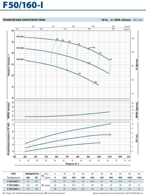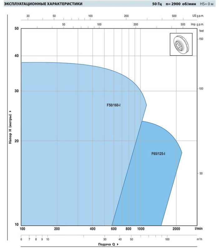 - Подача насоса до 1100 л/мин. (66 m3/ч) Напор насоса до 38 м