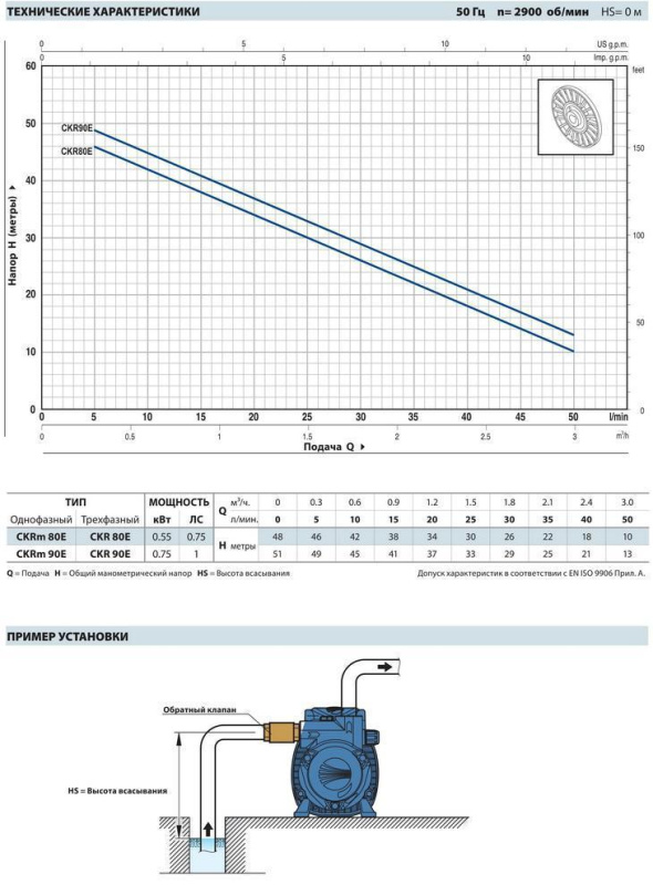 Серия CKR включает в себя САМОВСАСЫВАЮЩИЕ ЖИДКОСТНО-КОЛЬЦЕВЫЕ ЭЛЕКТРОНАСОСЫ. Рабочее колею, которое имеет многочисленные радиальные лопатки, помещено внутри корпуса насоса, в котором имеются впускные зазоры всасывающих и нагнетающих каналов; опора закрывает корпус насоса с задней стороны. Таким образом лопатки рабочего колеса оказываются заключенными между двумя тщательно обработанными стенками корпуса насоса. В процессе функционирования рабочее колесо обеспечивает центробежное движение воды по направлению к периферии; вода приобретает энергию и создает тем самым жидкостное кольцо, вращающееся вместе с самим рабочим колесом. Каждый сектор, заключенный между двумя смежными радиальными лопатками, выполняет накачивание, создавая разряжение и давление соответственно в каналах всасывания и нагнетания, в процессе быстрого прохождения впускных зазоров специального профиля. При первом запуске достаточно заполнить водой корпус насоса, после чего образуется жидкостное кольцо и, как следствие, начинается накачивание, необходимое для самовсасывания. Воздух, присутствующий во всасывающем трубопроводе, выталкивается еще на этапе нагнетания; образовавшийся таким образом вакуум приведет к подъему уровня воды во всасывающем трубопроводе, вызывая тем самым самовсасывание.