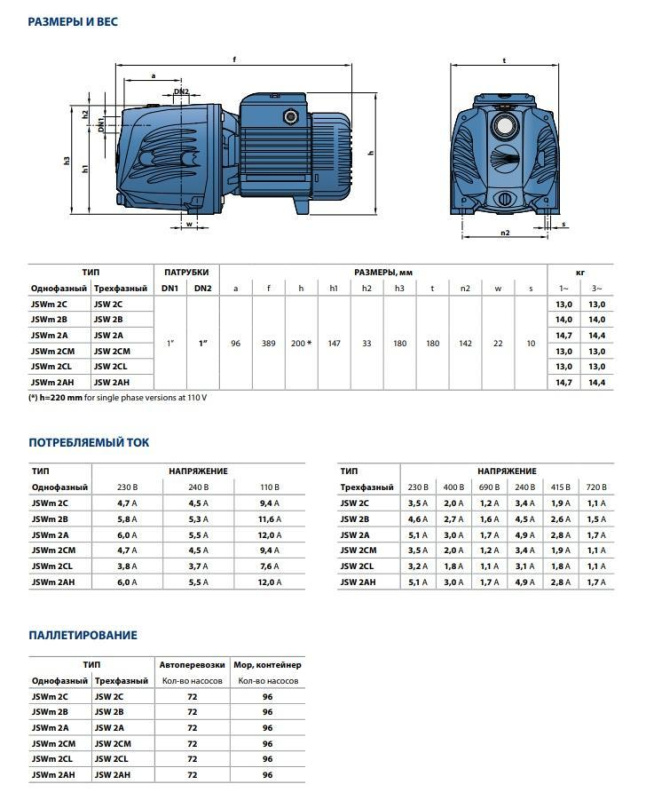 ОБЛАСТЬ ПРИМЕНЕНИЯ И УСТАНОВКА НАСОСА СЕРИИ PEDROLLO JSW: