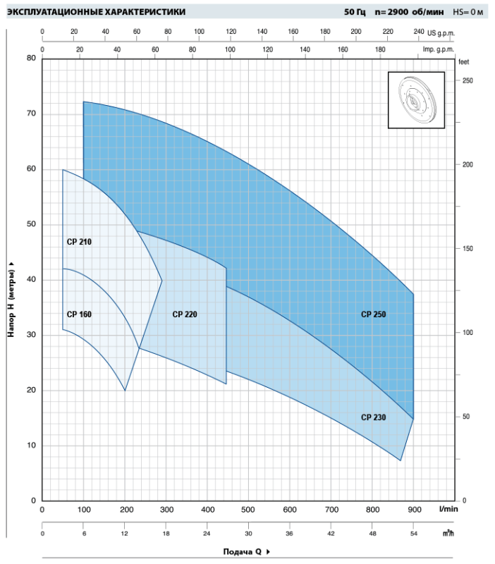 - Подача насоса до 900 л/мин. (54 m3/ч)