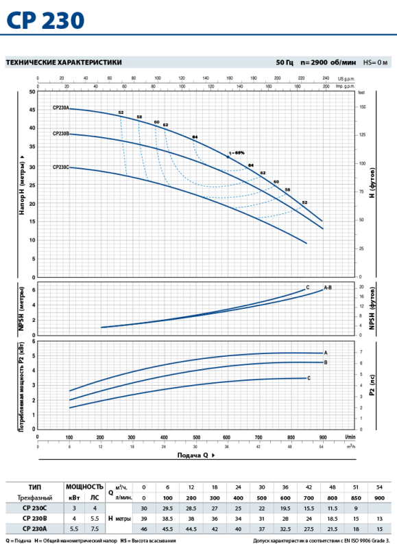 - Насос CP: трехфазный 230/400 В - 50 Гц до 4 кВт. 400/690 В - 50 Гц от 5.5 до 11 кВт.